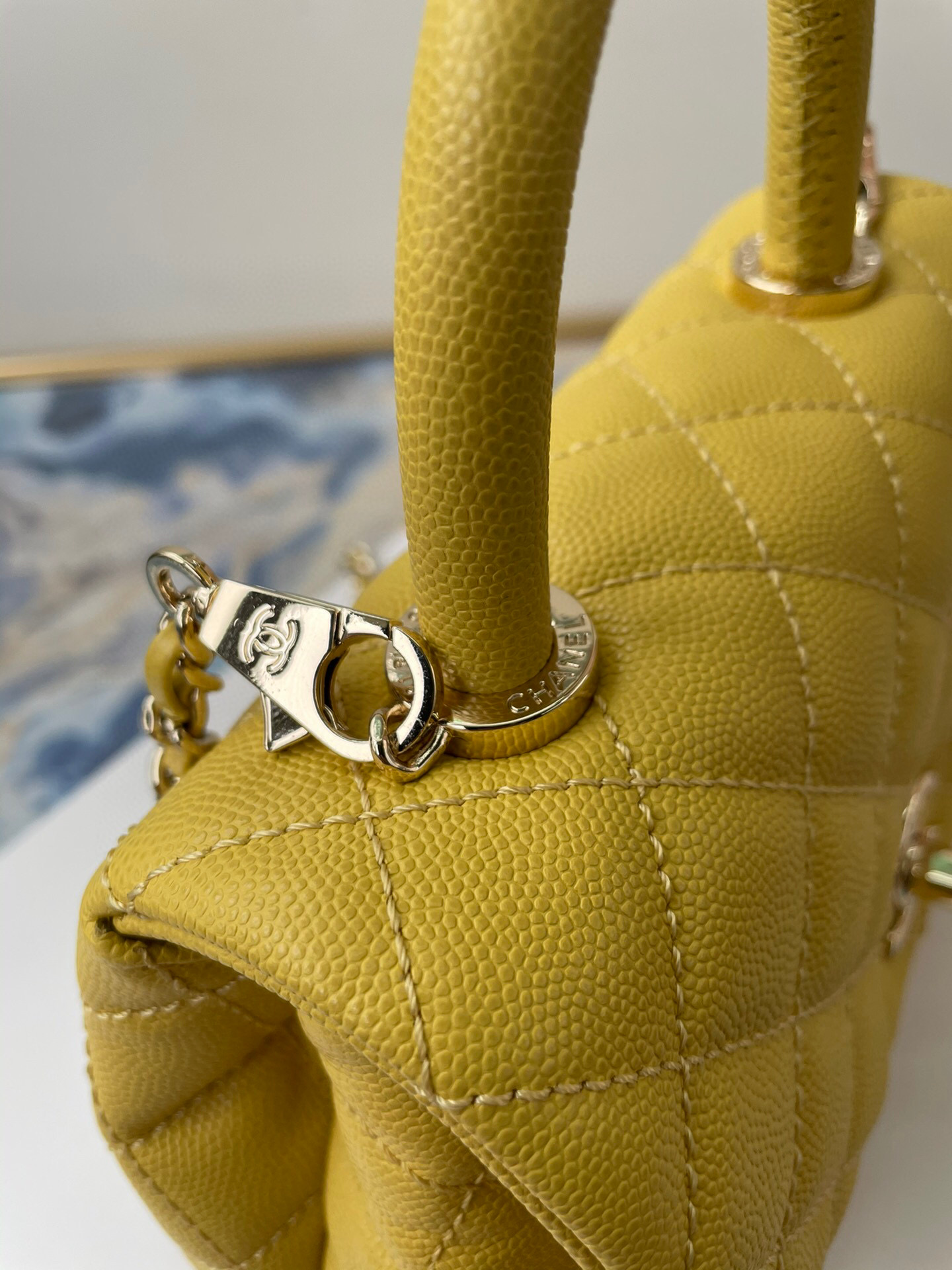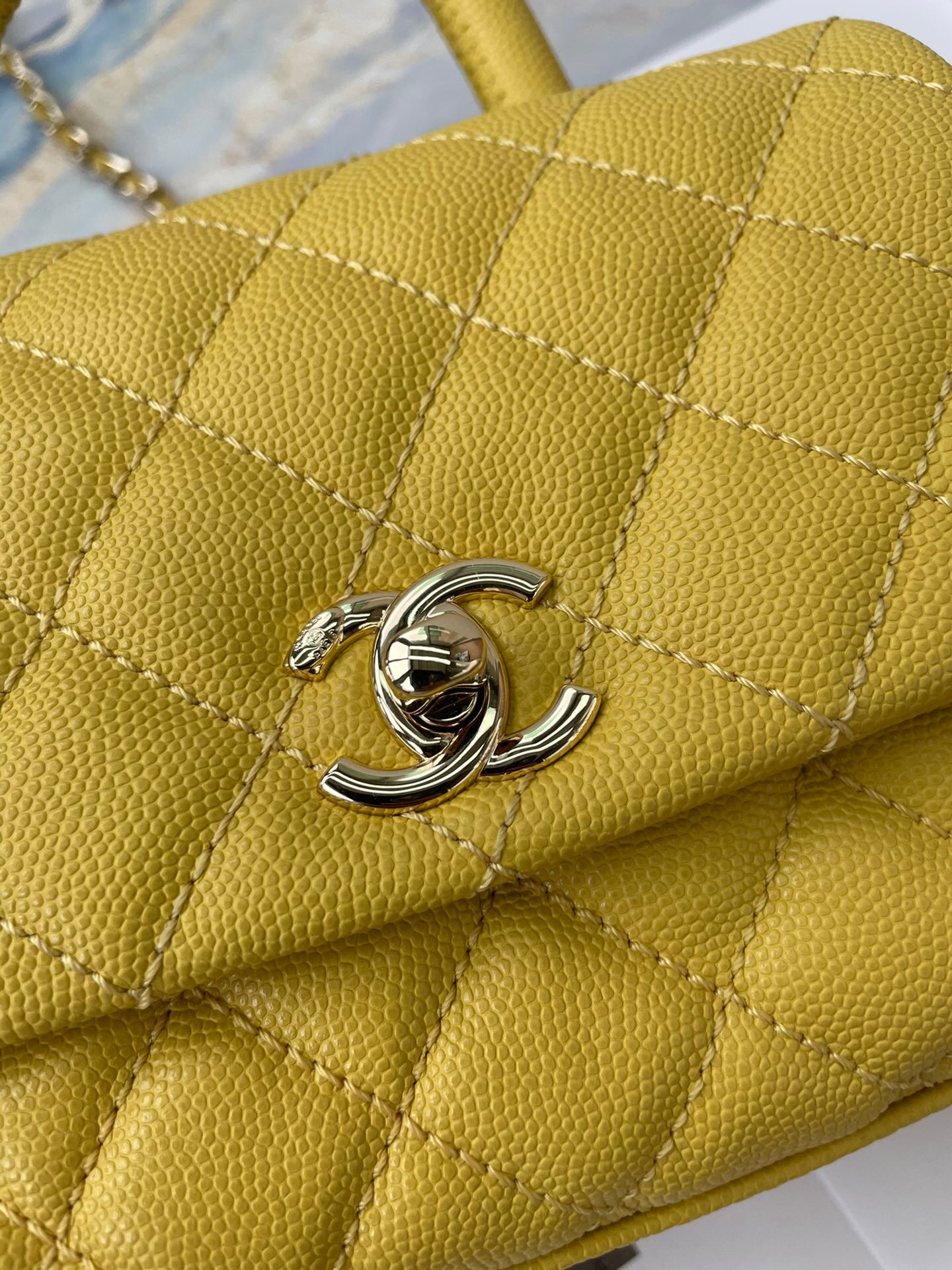 CHANEL EXTRA MINI Coco Handle Bag Grained Leather Dark Yellow