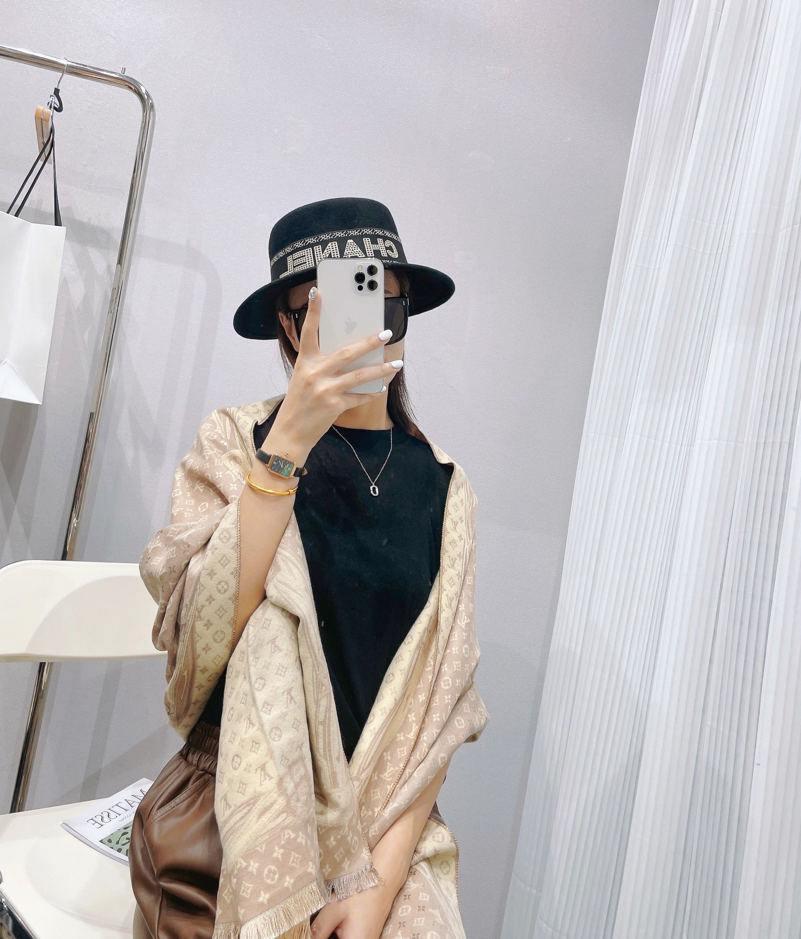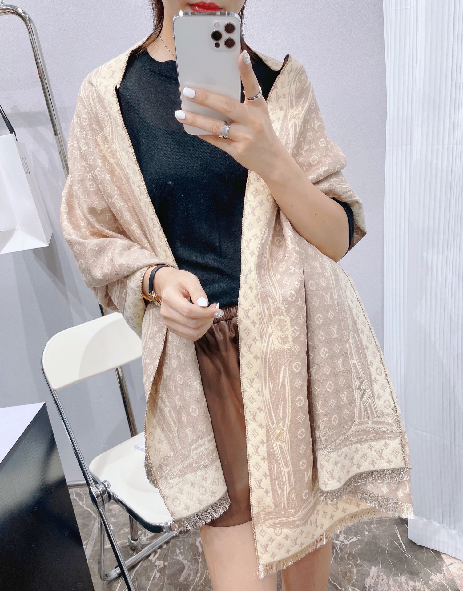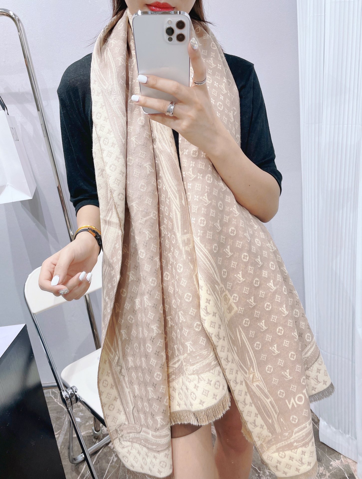 LV cashmere long scarf a10 black